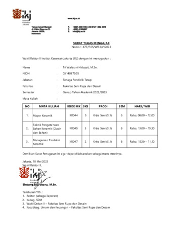 Wahyuni, tri (2023) Bukti Kinerja Pengajaran Mayor Keramik. Institut Kesenian Jakarta.