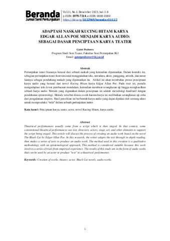 prabowo, gatot (2023) Jurnal Beranda Gatot Prabowo. Beranda: Jurnal Seni Pertunjukan, 1 (1). pp. 1-8.