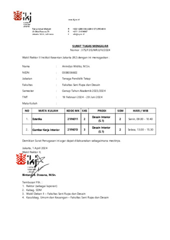 Widito, Anindyo (2024) Bukti Kinerja Pengajaran Estetika. Institut Kesenian Jakarta.