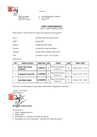 Adi Pratama Willa, Nicholas (2024) Bukti Kinerja Pengajaran Tipografi & Layout (D). Institut Kesenian Jakarta.