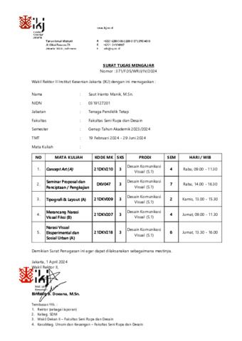 Manik Irianto, Saut (2024) Bukti Kinerja Pengajaran Narasi Visual Eksperimental dan Sosial Urban (A). Institut Kesenian Jakarta.