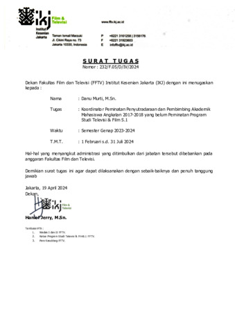 Murti, Danu Pembimbing Akademik Genap 23-24. Fakultas Film dan Televisi - IKJ. (Unpublished)
