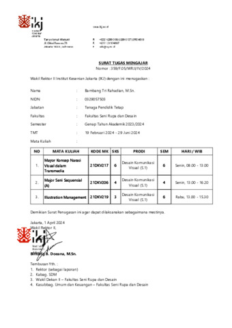 Rahardian Tri, Bambang (2024) Bukti Kinerja Pengajaran Mayor Konsep Narasi Visual dalam Transmedia. Institut Kesenian Jakarta.