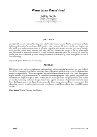 Paksi, Dedih Nur Fajar (2021) Warna dalam Dunia Visual. Fakultas Film dan Televisi-Institut Kesenian Jakarta, 12 (2). pp. 90-97. ISSN 1907 - 3097