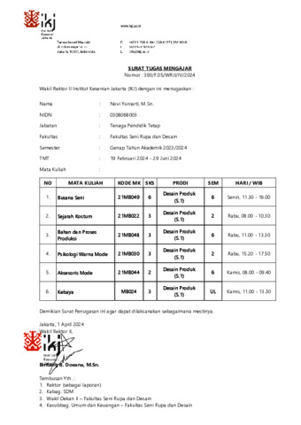Yuniarti, Novi (2024) Bukti Kinerja pengajaran Bahan dan Proses Produksi. Institut Kesenian Jakarta.