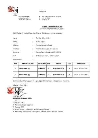 Zamilia, Zamilia (2024) Bukti Kinerja Pengajaran Pilihan Kayu A. Institut Kesenian Jakarta.