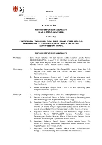 Hermansyah, S.Sos., S.Sn., M.Sn., Kusen Dony 070A_Bukti SK Menguji Prodi S.1 Semester Genap 2023/2024. Fakultas Film dan Televisi. (Unpublished)