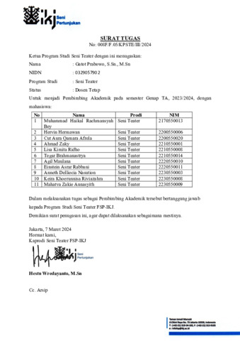 prabowo, gatot Surat Tugas PA. INSTITUT KESENIAN JAKARTA.