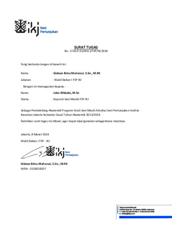 widodo, joko Surat Tugas PA 2024. INSTITUT KESENIAN JAKARTA.