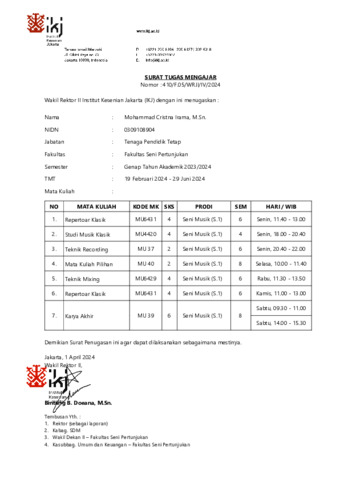irama, cristna BUKTI AJAR KARYA AKHIR - M CRISTNA IRAMA. Institut Kesenian Jakarta.