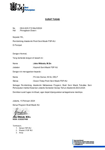 damar, pri ario Surat Tugas PA Damar Genap 2023. Prodi Musik IKJ. (Unpublished)