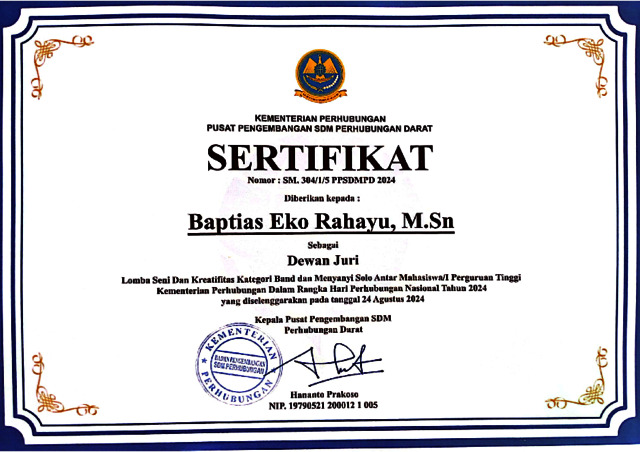 Rahayu, Baptias 2024 Harhubnas Sertifikat Juri. Institut Kesenian Jakarta. (Unpublished)