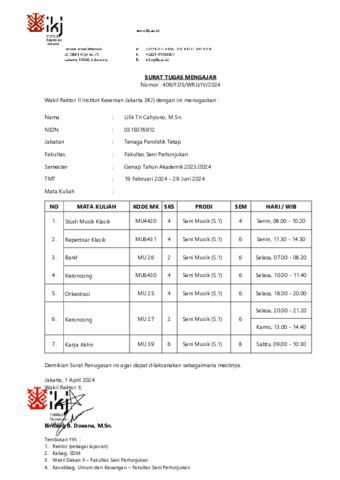 cahyono, liliek tri Bukti KInerja Pengajaran Studio Musik Klasik 2024. INSTITUT KESENIAN JAKARTA.