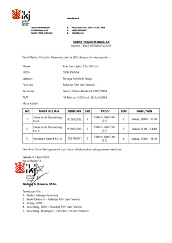 Ario Sasongko, Ario Bukti Ajar Mata Kuliah PENULISAN KREATIF. Fakultas Film dan Televisi. (Unpublished)