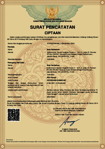 darmawan, iwan (2022) Keyboard Gamelan. Kementerian Hukum dan Hak Asasi Manusia.