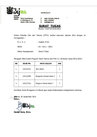 Subadi, - Bukti Ajar PROGRAM TELEVISI Sem Ganjil 2021_2022. Fakultas Film dan Televisi. (Unpublished)