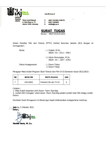 pamungkas, satrio Bukti Ajar PRAKTEK PRODUKSI FILM DAN TELEVISI III Semester Gasal 2021_2022. Fakultas Film dan Televisi. (Unpublished)
