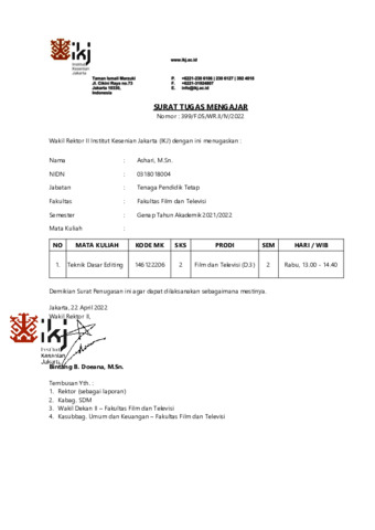 ashari, - Bukti Ajar Teknik Dasar Editing Sem Genap 2021-2022. Fakultas Film dan Televisi. (Unpublished)