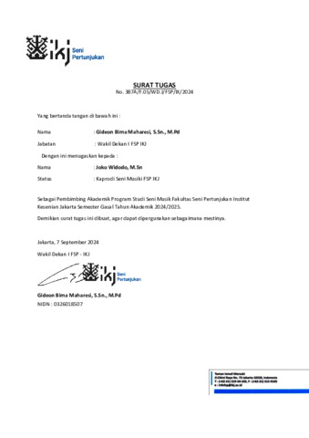 widodo, joko Surat Tugas PA Ganjil '24. INSTITUT KESENIAN JAKARTA.