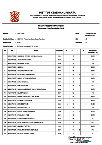 Suryajaya, Martin (2024) Rekap Presensi Mahasiswa Mata kuliah Workshop Dasar-Dasar Penulisan. Sekolah Pascasarjana IKJ. (Unpublished)
