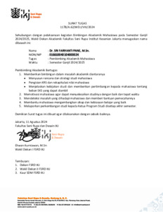Pane, Sri Fariyanti (2024) Surat Tugas Sebagai Pembimbing Akademik (PA). Fakultas Seni Rupa dan Desain Institut Kesenian Jakarta.