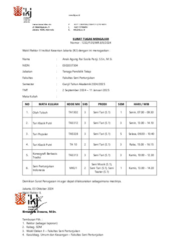 Panji, A.A. Rai Susila Bukti mengajar Koreografi Berbasis Tradisi. Institut Kesenian Jakarta.