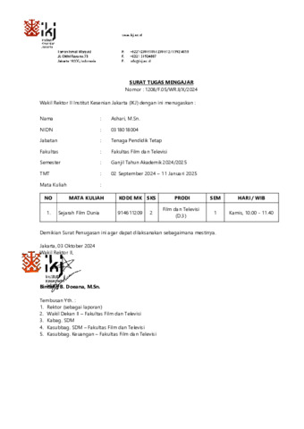 ashari, - Bukti ajar Sejarah Film Dunia - Semester Gasal 2024/2025. Fakultas Film dan Televisi. (Unpublished)