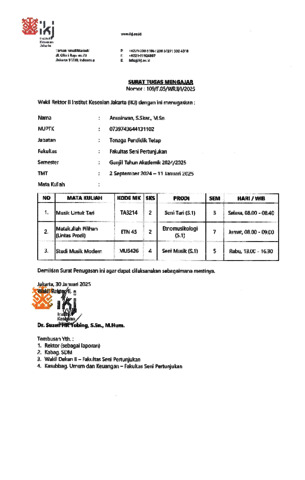 Anusirwan, anusirwan Bukti mengajar mata kuliah pilihan (Lintas Prodi). Institut Kesenian Jakarta.