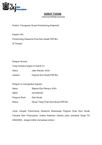 029. Surat Tugas PA Baptias Eko Rahayu, M.Sn TA Gasal 2024-2025.pdf Download (187kB) | Preview |