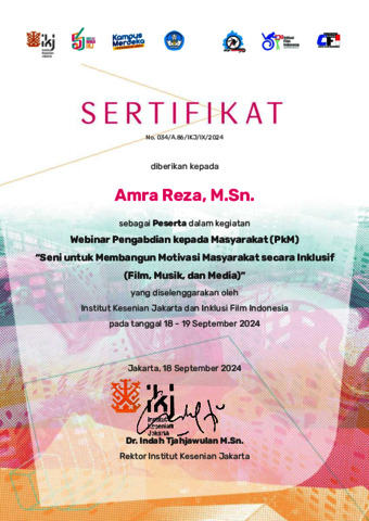 Sertifikat PkM Inklusi II - Amra Reza, M.Sn..pdf Download (915kB) | Preview |
