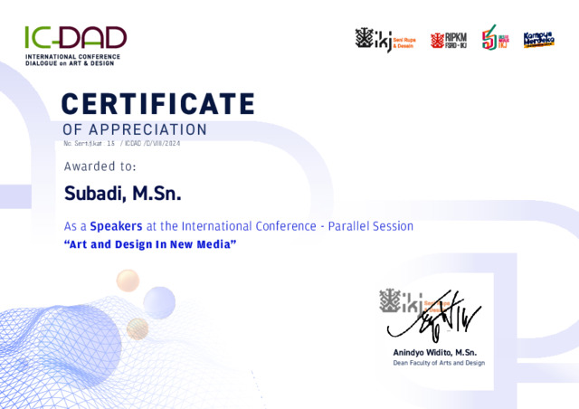 Subadi, Subadi Sertifkat ICDAD. Fakultas Film & TV - Institut Kesenian Jakarta. (Unpublished)