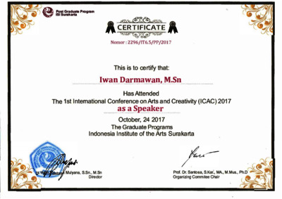 darmawan, iwan (2017) Sertifikat pembicara Internasional. ISI Surakarta. (Unpublished)