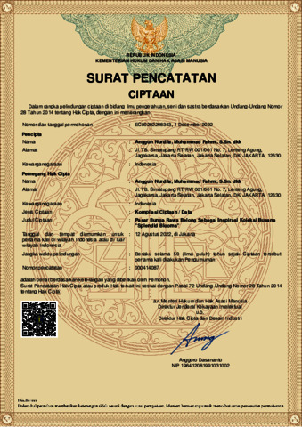 KEMENTERIAN HUKUM DAN HAK ASASI MANUSIA (2022) Karya Hki Kompilasi Ciptaan / Data : Pasar Bunga Rawa Belong Sebagai Inspirasi Koleksi Busana “Splendid Blooms”. EC00202298343.