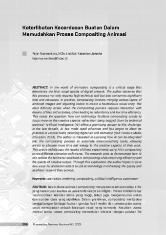 Fajar, Nuswantoro Keterlibatan Kecerdasan Buatan Dalam Memudahkan Proses Compositing Animasi. Seminar Nasional Institut Kesenian Jakarta.