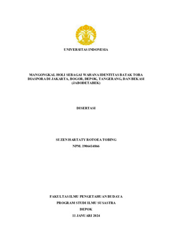 Disertasi_Suzen Tobing_Mangongkal Holi Sebagai Wahana Identitas Batak Toba Diaspora di Jakarta,Bogor,Depok,Tangerang, dan Bekasi (JABODETABEK)_2 Feb'24_compressed.pdf Download (2MB) | Preview |