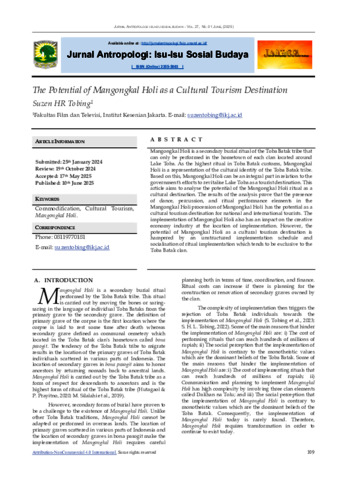 tobing, suzen Jurnal_The Potential of Mangongkal Holi as a Cultural Tourism Destination. Jurnal Antropologi - JANTRO.
