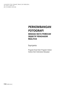 Supriyanta, - Perkembangan Fotografi Sebagai Mata Perekam Objektif Penghadir Realitas. Fakultas Film dan Televisi. (Unpublished)