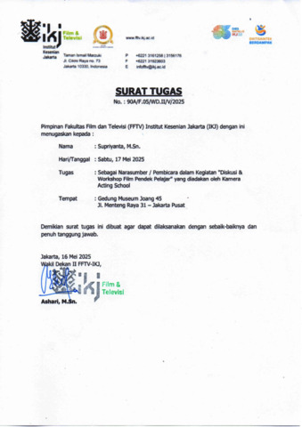 Supriyanta, - Surat Tugas. Fakultas Film dan Televisi. (Unpublished)