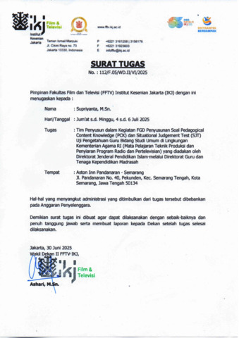 Supriyanta, - Surat Tugas. Fakultas Film dan Televisi. (Unpublished)