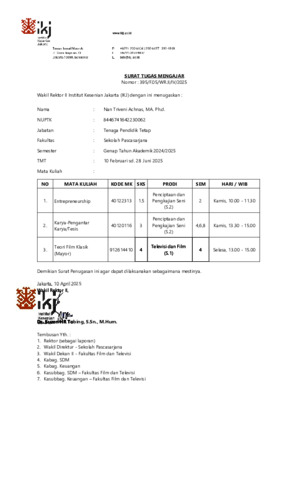 Achnas, Nan Triveni Bukti Pengajaran Mata Kuliah Entrepreunership. Sekolah Pascasarjana IKJ. (Submitted)
