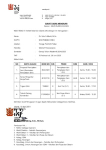 Yulfianti, Yola Bukti Mengajar MK Proposal Penciptaan Seni. Sekolah Pascasarjana IKJ.