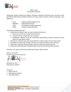 Rinjani, Samiaji Rangga (2025) Surat Tugas Sebagai Pembimbing Akademik. Fakultas Seni Rupa dan Desain Institut Kesenian Jakarta.