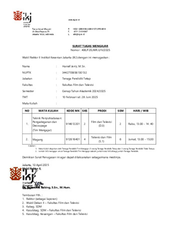 jerry, hanief Bukti Ajar Mata Kuliah Magang. Fakultas Film dan Televisi. (Unpublished)