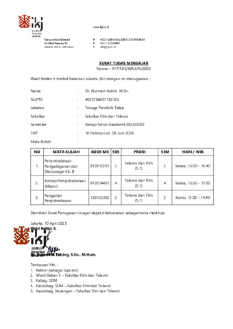 Hakim, Nurman Bukti Ajar Mata Kuliah Penyutradaraan Pengadeganan dan Decoupage Kelas B Semester Genap 2024/2025. Fakultas Film dan Televisi. (Unpublished)