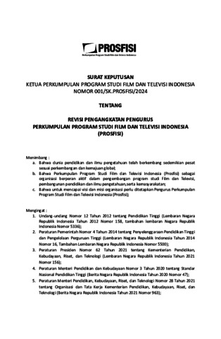 Murti, Danu Surat Keputusan Pengurus Perkumpulan Program Studi Film dan Televisi Indonesia Periode 2023-2027. Fakultas Film dan Televisi - IKJ. (Unpublished)