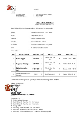 Tandian, Erina Adeline Bukti Ajar_Genap 2024-2025_Teknik Dasar Penulisan Skenario. Fakultas Seni Pertunjukan - IKJ. (Unpublished)