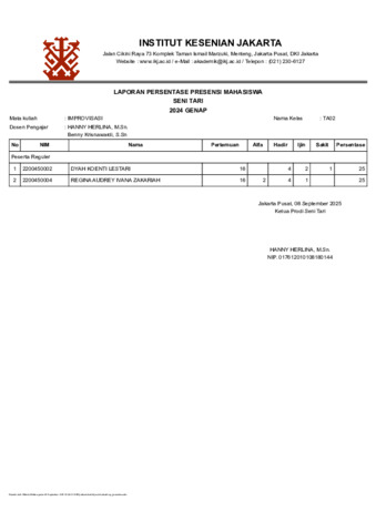 Herlina, Hanny Bukti Mengajar TA21 - Improvisasi genap 2024-2025. Institut Kesenian Jakarta.