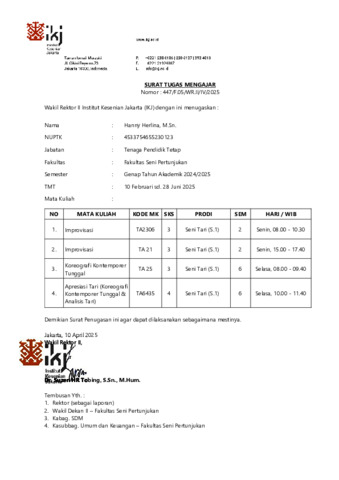 Herlina, Hanny Bukti Mengajar TA21 - Improvisasi genap 2024-2025. Institut Kesenian Jakarta.