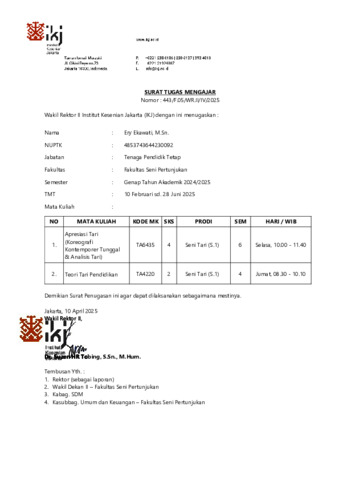 Ekawati, Ery Bukti mengajar Apresiasi Tari smstr genap 2024-2025. Institut Kesenian Jakarta.