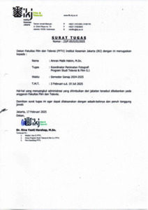 malik, amran Surat Tugas Koordinator Peminatan Fotografi Program Studi Televisi dan Film S1. Fakultas Film dan Televisi - IKJ. (Unpublished)